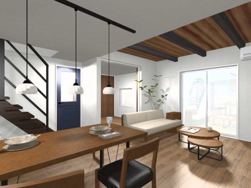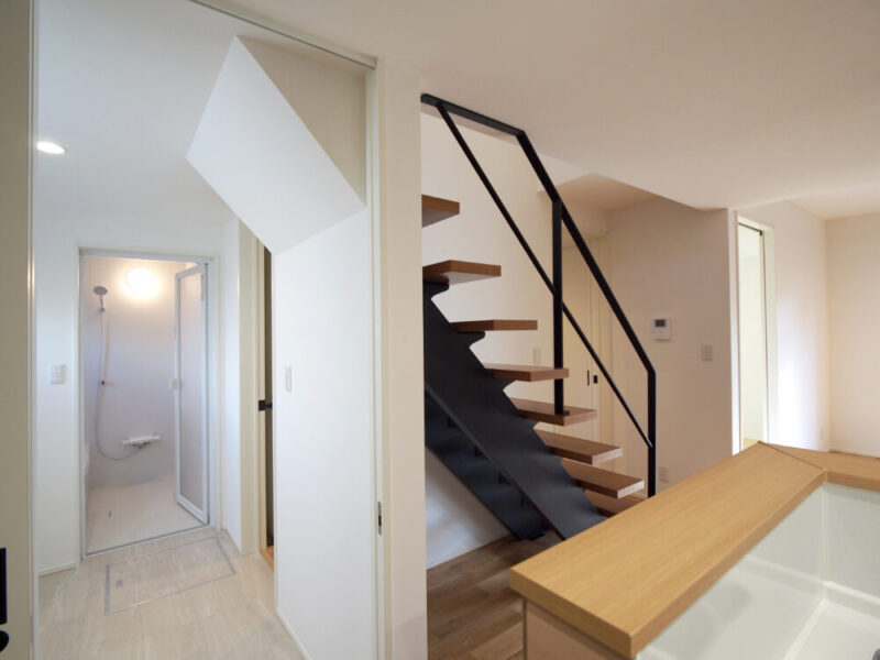オープン階段が空間を引き締めてくれます。